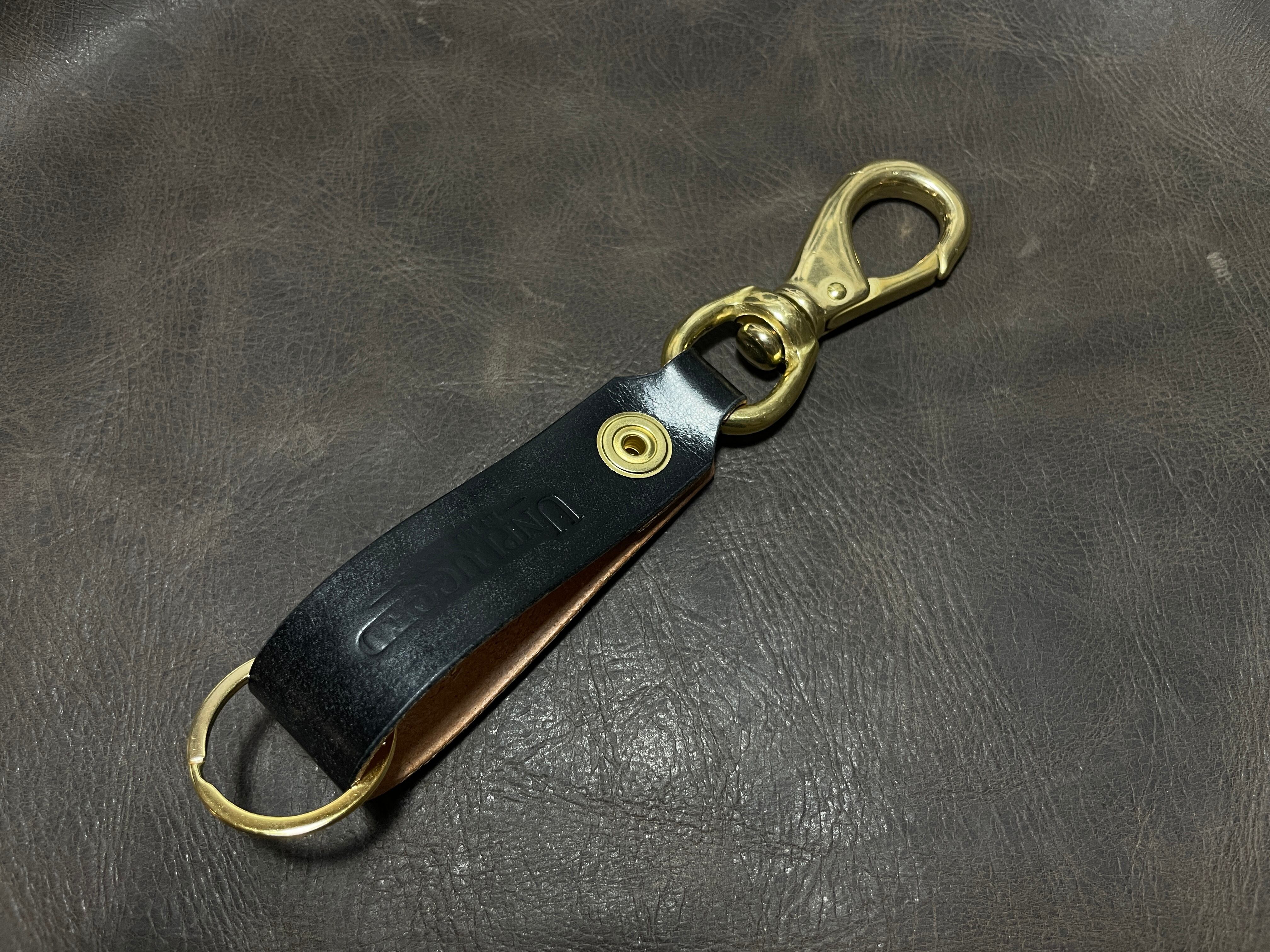 真鍮製の金具を使用したベルトループタイプのキーホルダーになります。