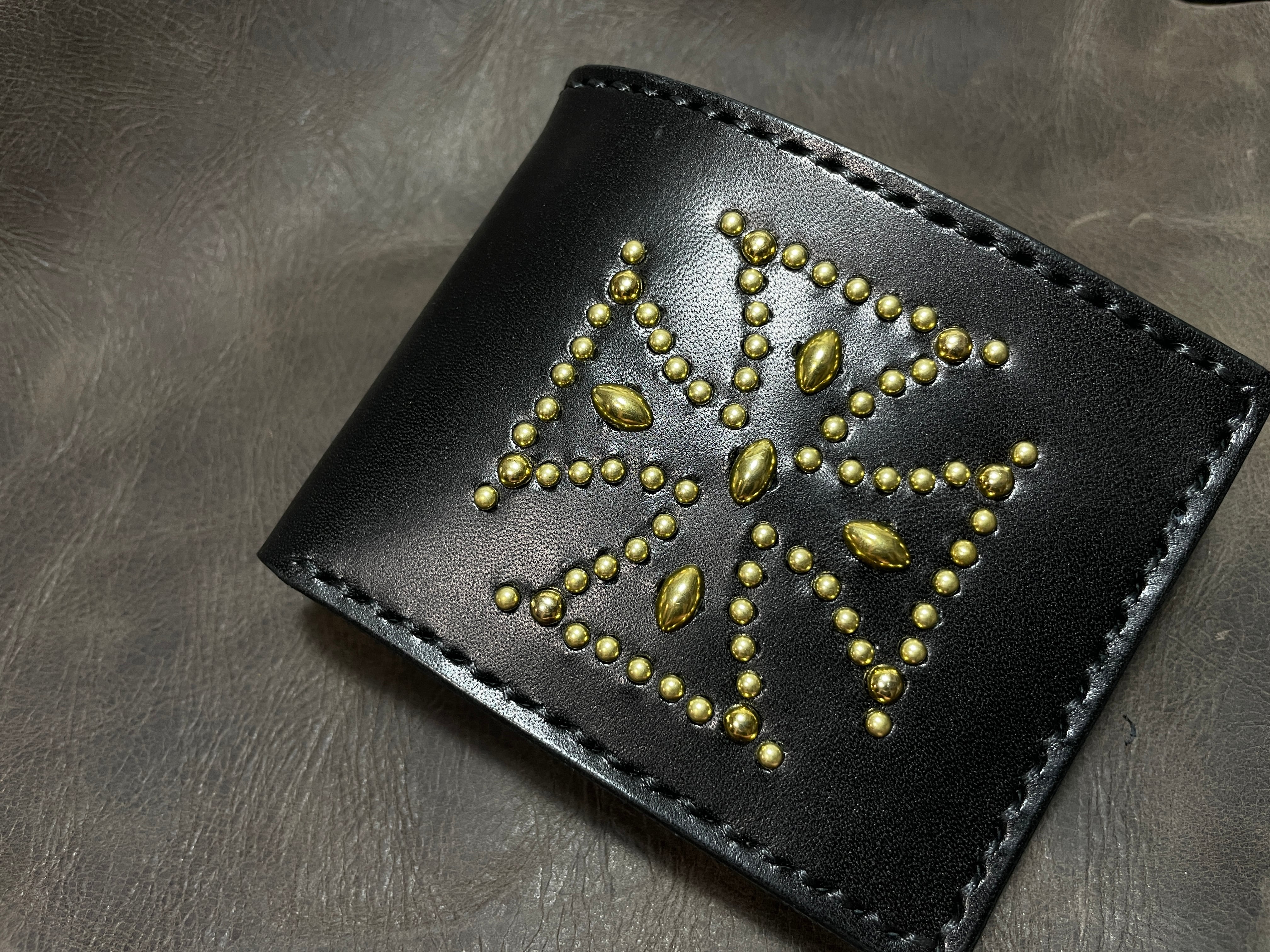 表面にアイアンクロスのスタッズを施したショートウォレットになります。